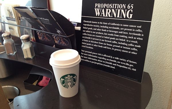 毒性物質教育研究協議会は2010年、スターバックスを含む コーヒー 販売店90社を、アクリルアミドなど発がん性がある化学物質が製品に含まれていることを消費者に警告するよう企業に義務付けるカリフォルニア州法に違反したとして提訴した。訴訟では、被告らのカリフォルニア州内の店舗で2002年以降にこの化学物質にさらされた人1人につき最高2,500ドルの罰金を科すことを求めている。